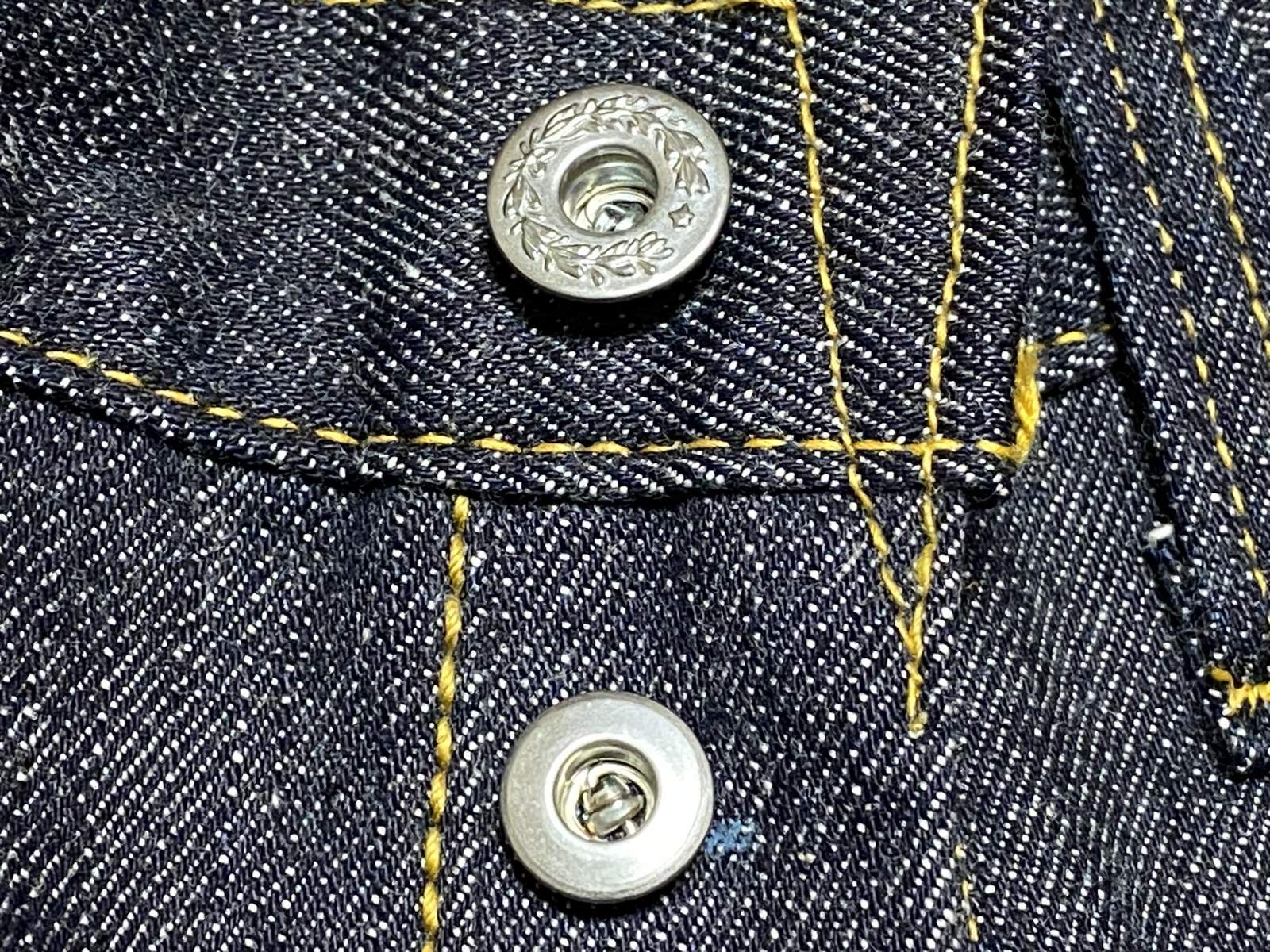また、ボタンには月桂樹とソリッドドーナツの組み合わせとなており、コラボジーンズならではの特別仕様となっております。