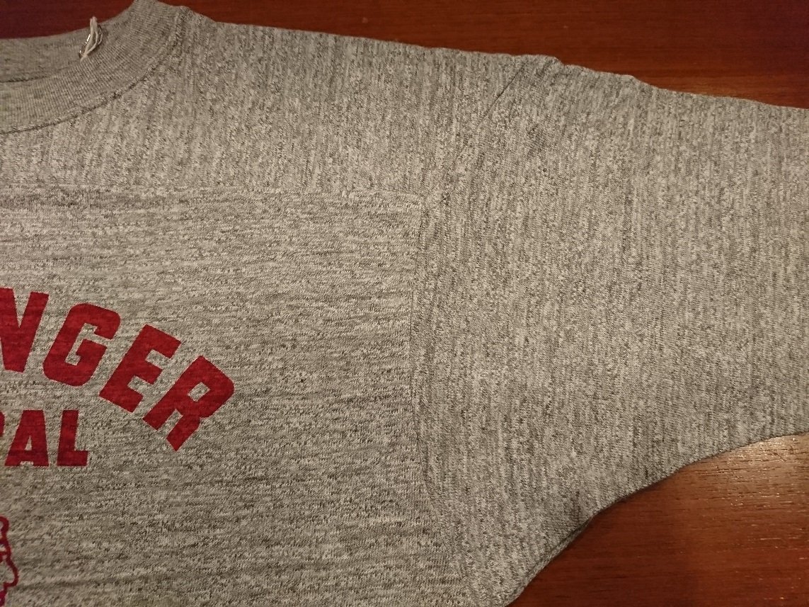 「吊り編み機より希少」といわれる旧式のローゲージ編み機で編まれたウエアハウスの定番ボディを使用して製作された七分袖のフットボールTシャツです。