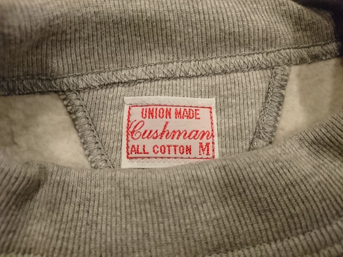 下地の糊をシートと同色に着色をしていますので発色が良く、また剥げてきた時に白くならずに目立たなくなる様に製作されるなど、クッシュマンの拘りが満載されたスウェットです。