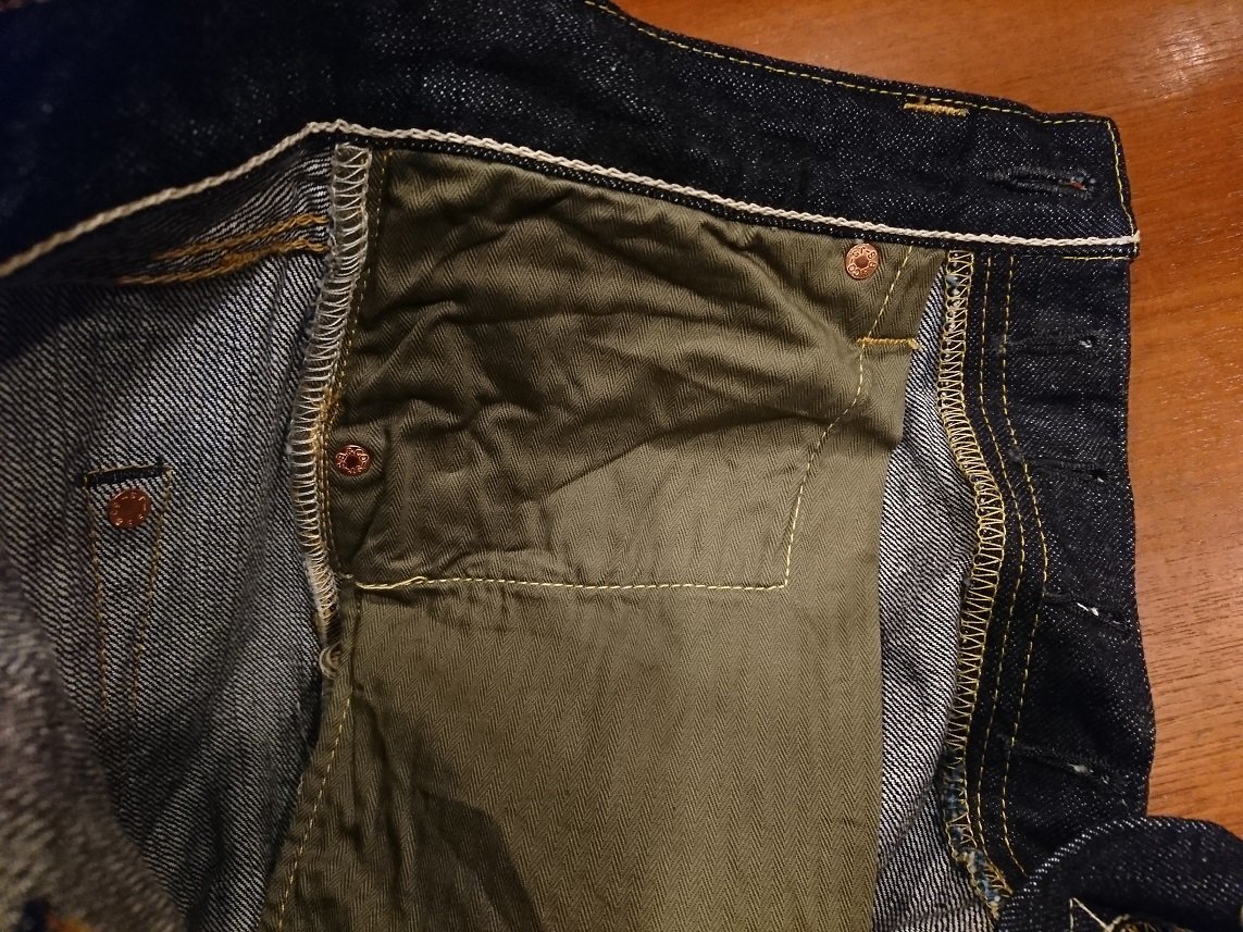 第二次世界大戦時の物資統制に伴い、簡略化されたディテールが特徴のジーンズとなります。