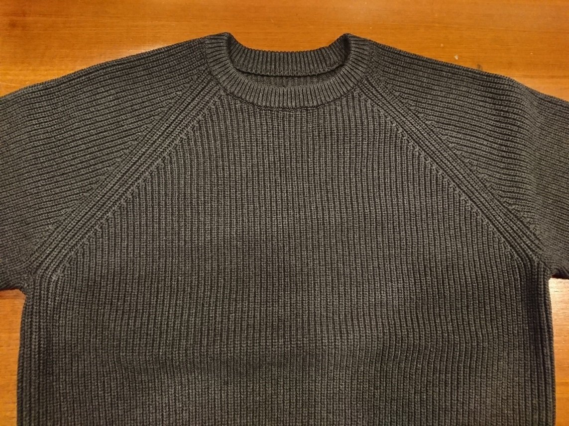 畔編みでがっちりとした重厚感が特徴的なコットンニットです。
