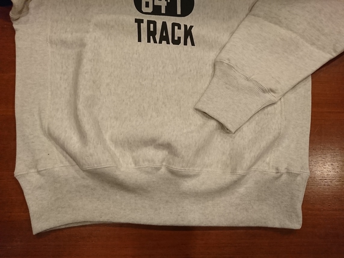 縮みを軽減するために生地をヨコ使いした画期的なリバースウィーブのスウェットとなっております。