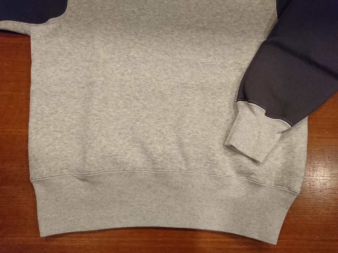 縫製はほぼ二本針ですが、袖口は丸編みリブ、袖口リブは脇下の縫製の2本針からそのまま1回でリブ付けをされております。